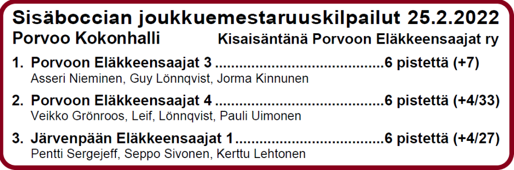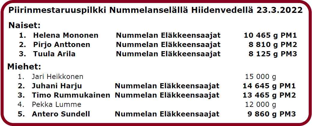 2022 tulokset