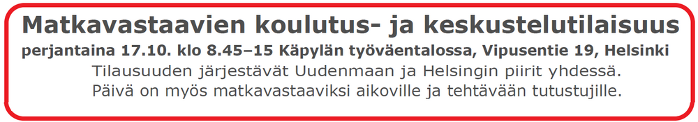 Marja-Leena Lehtimäki toimii myös alustajana. Järjestää Helsingin piiri