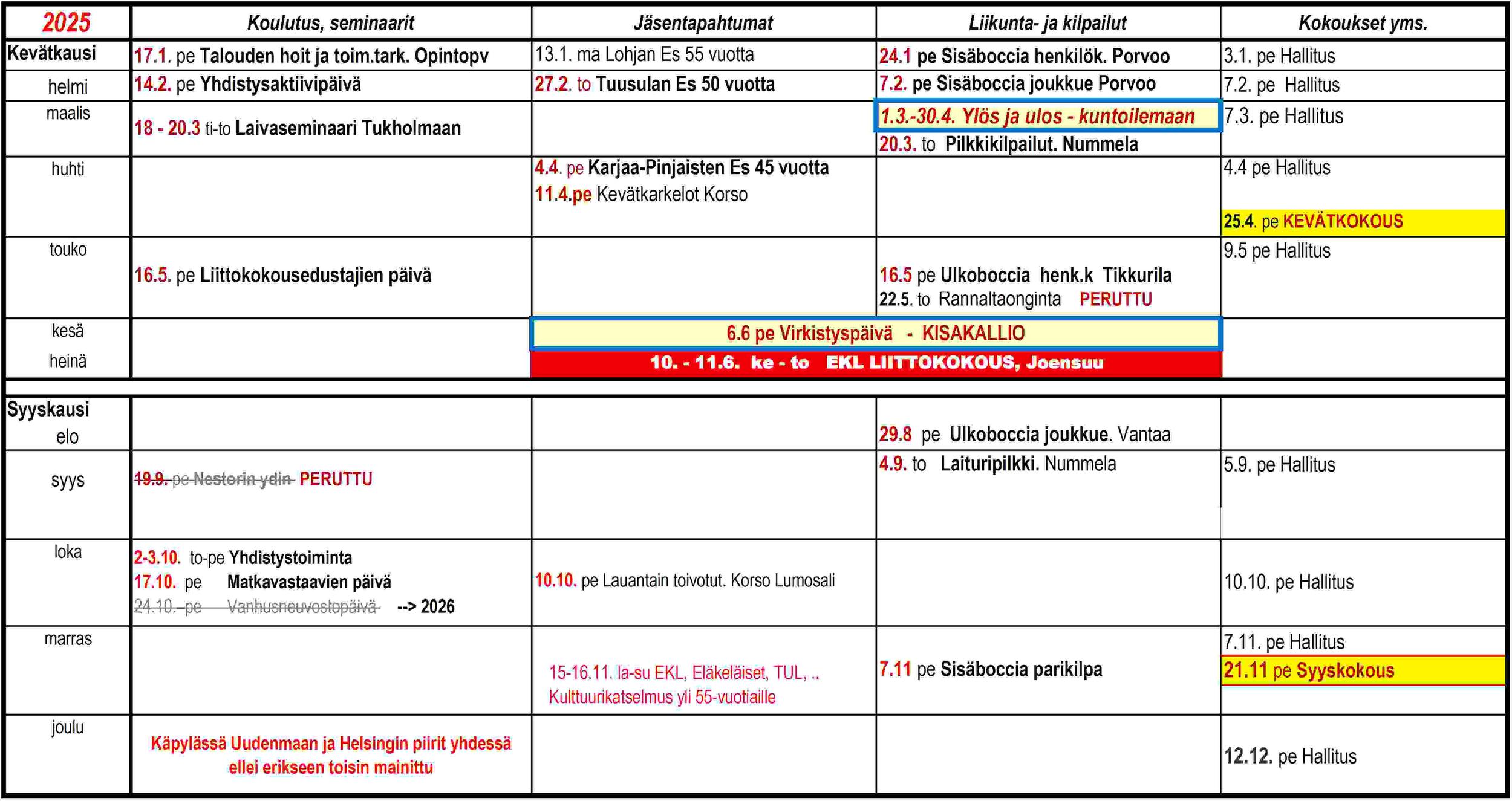 Vuoden 2025 aikataulua