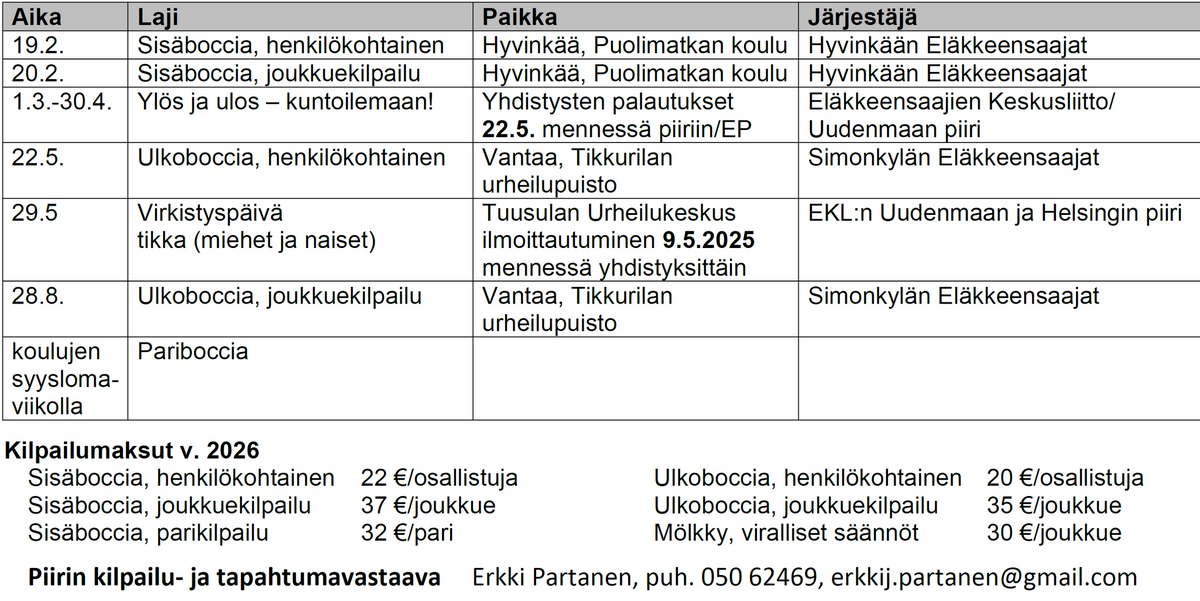 Piirin kilpailut ja tapahtumat 2026