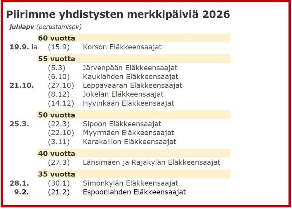Yhdistysten yhteyshenkilöt (Puheenjohtaja ja sihteeri)