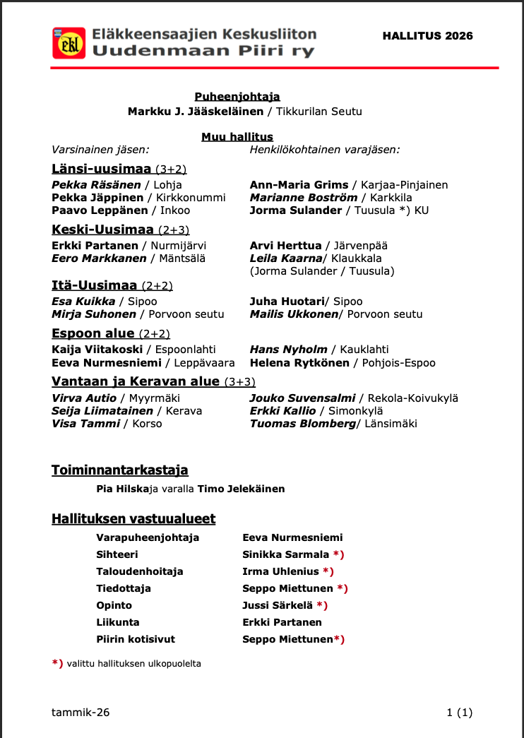 Piirin pankkitili on: FI28 5062 0320 2692 48 (BIC: OKOYFIHH)